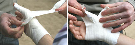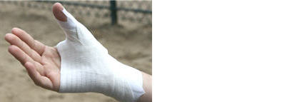 | 7. Le strapping est terminé. Avec ce "gant", votre pouce est protégé et l'entorse va se résorber rapidement. |